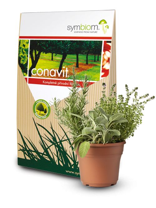 CONAVIT® je kompletně přírodní hnojivo, které je pomalu rozpustné. To má za následek neustálé a postupné uvolňování živin k Vašim rostlinám. Na rozdíl od chemických hnojiv se nevyplavuje a nezanechává v půdě žádné škodlivé zbytky. Je to ideální volba pro výživu Vašich rostlin. Nemusíte se obávat žádných vedlejších účinků. Jedná se o naprosto ekologický přípravek, který je účinný a zároveň šetrný vůči přírodě. Účinek CONAVITU: 100% přírodní složení v hnojivu nejsou přítomny žádné syntetické látky nebo produkty chemického původu vysoká zásoba základních živin se pozvolna uvolňuje do půdy po celou sezónu nezanechává žádné škodlivé zbytky v půdě Vhodný pro: pro všechny rostliny vhodný pro ekologické pěstování Aplikace a dávkování: Nasypte do výsadbové jamky tak, aby vrstva přípravku pokryla dno, promíchejte s výsadbovým substrátem a vysaďte rostlinu. Při plošné aplikaci zapravte CONAVIT® přibližně 10 cm pod povrch v dávce 200-400 g/m2. ke vzrostlým rostlinám vyhlubte 10 cm hluboké jamky vedoucí ke kořenům a nasypte do nich přípravek. Přípravek lze také smíchat se substrátem v dávce 40 g na 10 litrů substrátu. Dávkování aplikace při výsadbě Objem kontejneru Dávka na rostlinu Balení 750 gvystačí na do 1 l (20-30 cm) 15 g 50 rostlin 3 l (30-40 cm) 45 g 17 rostlin 5 l (40-60 cm) 75 g 10 rostlin 10 l (nad 60 cm) 150 g 5 rostlin Složení: Keratin, přírodní humáty, výtažky z mořských organismů (chitin, řasy, patentkali, hyperkorn, bentonit, apatit, zeolit N min. 4%, P min. 5%, K min. 3%, Mg, S, Ca, mikroprvky (Mn, Zn, B, Cu). Doplňující informace a upozornění: Skladujte v suchu a chladu. Přípravek je zcela biologicky rozložitelný. neobsahuje geneticky upravené organismy, nezanechává škodlivé zbytky v půdě.Doporučujeme kombinovat s našimi ostatními přípravky jako např.Symbivit